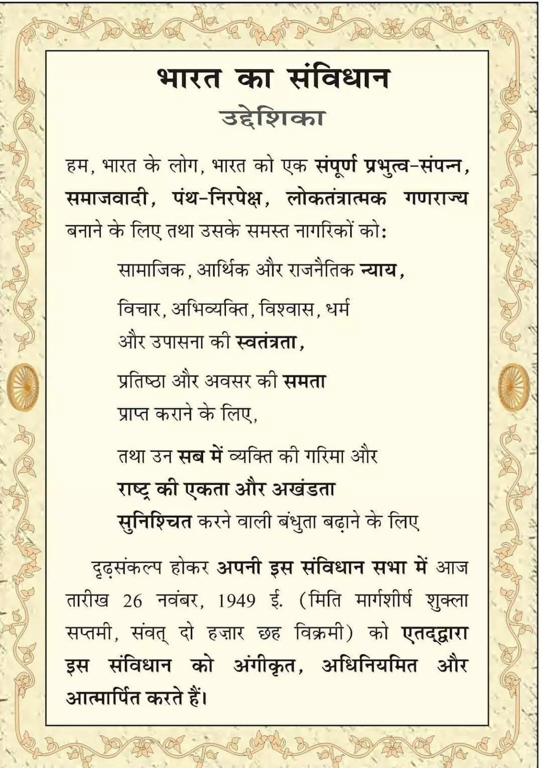पूरा देश आज संविधान दिवस (Constitution Day) मना रहा है। प्रत्येक भारतीय नागरिक (Citizen)के लिए इस दिन का बहुत बड़ा महत्व है। इसे दिन भारत सैकड़ों वर्षो की गुलामी के बाद दुनिया के सामने एक प्रभुत्व संपन्न राष्ट्र के रूप में खुद को नामित किया। जैसे भारत के प्रत्येक नागरिक के लिए 15 अगस्त (15 August) और 26 जनवरी (26 January) का दिन महत्वपूर्ण होता है। उसी तरह प्रत्येक भारतीय के लिए 26 नवंबर का दिन भी उतना ही मायने रखता है। आज ही के दिन हमारे संविधान सभा ने 2 वर्ष 11 महीने 18 दिन के कड़ी तपस्या के बाद हमारे देश का संविधान देशवासियों व दुनिया के सामने रखा।
