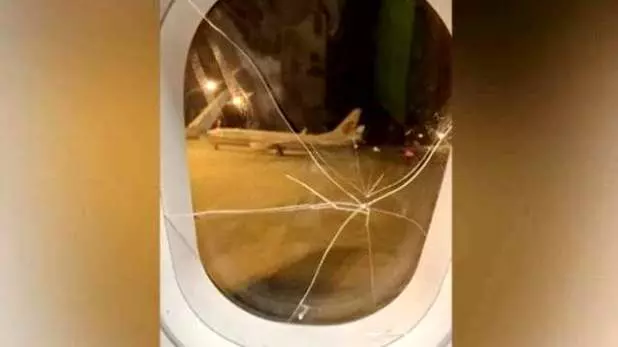 पंच मारकर तोड़ा प्लेन की खिड़की का शीशा