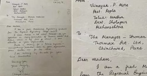 यह नौकरी का आवेदन थर्मेक्स को लिखा गया था. रवीना के पिता ने 'ट्रेनी इंजीनियर- मैन्युफैक्चरिंग प्रोडक्शन' की भूमिका के लिए आवेदन किया था. लिखावट वास्तव में सुंदर थी और पोस्ट पर टिप्पणी करने वाले कई लोग इस पर सहमत हुए. रवीना के इस पोस्ट को 27 हजार से ज्यादा लोगों ने पंसद किया और इनमें से ज्यादातर लोग इमोशनल हो गए.