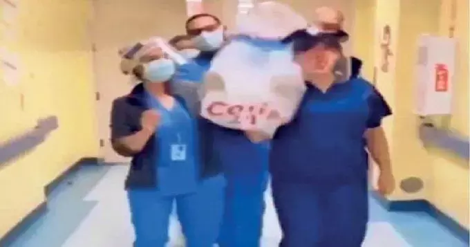 प्यूर्टो रिको के एक अस्पताल की नर्सों का एक टिक टॉक विडियो सोशल मीडिया पर काफी शेयर हो हो रहा है। इस विडियो में नर्सों ने एक बैग लिया हुआ है जिसका इस्तेमाल कोरोना वायरस से संक्रमित मरीजों की लाश रखने के लिए किया जाता है। इस टिक टॉक विडियो में नर्स बैग में एक 'लाश' लेकर नाचती हुई दिखाई दे रही हैं।