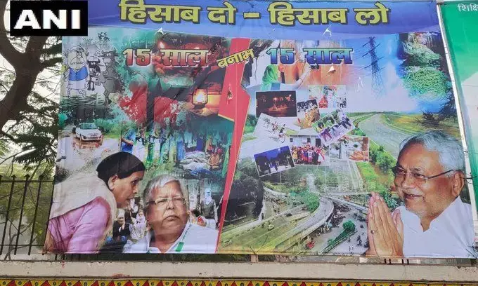 बिहार की राजधानी पटना के इनकम टेक्स चौराहे पर यह पोस्टर लगाया गया है ताकि बिहार की ज्यादा से ज्यादा जनता इसको देख सके. इस पोस्टर के मुताबिक़ यह साफ़ हो गया है अब लड़ाई पन्द्रह साल बनाम पन्द्रह साल की होगी.
