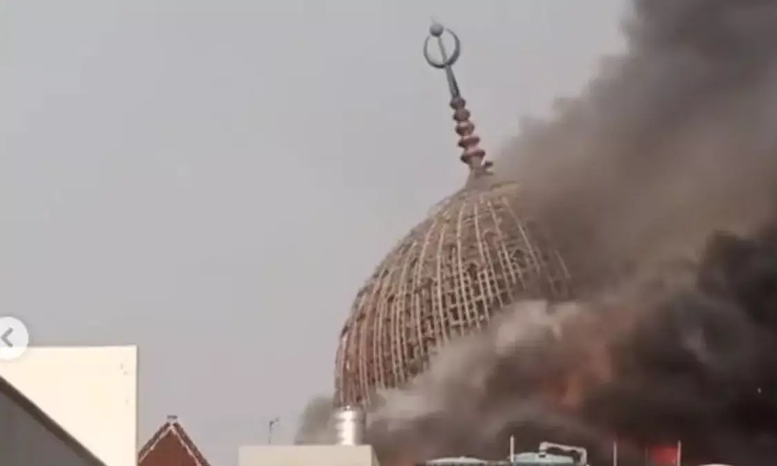 आग इतनी भयावह थी कि देखते ही देखते मस्जिद का विशाल गुंबद भरभराकर ढह गया.;
