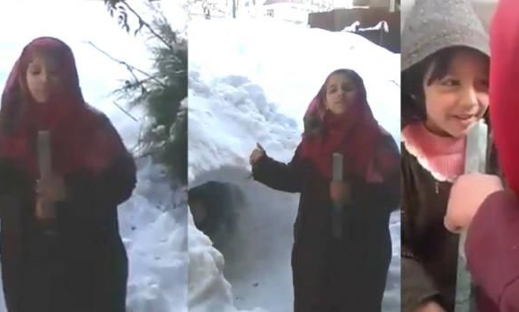 A schoolgirl from #Shopian is reporting about snowfall. Watch this aspiring journalist's report. #kashmir pic.twitter.com/QSKYAopZ6h