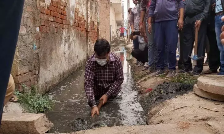 8 फीट गहरे नाले में घुस मंत्री जी ने निकाला कीचड़, लोग देखते ही अचंभित हुए