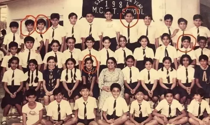 मनेक्जी कूपर एजुकेशन ट्रस्ट स्कूल की सिल्वर जुबली की, जिसमें कई सारे बच्चे नजर आ रहे हैं. लेकिन जिन 5 बच्चों की तस्वीर पर गोल सर्किल बनाए हुए हैं, उन्हें ध्यान से देखिए. दरअसल, ये बच्चे कोई और नहीं बल्कि शर्मन जोशी, दिव्या भारती, फरहान अख्तर, रितेश वाधवानी और फिल्म एडिटर आनंद सुबया हैं. बॉलीवुड के तीन फिल्मी सितारे फरहान अख्तर, दिव्या भारती और शर्मन जोशी एक ही क्लास में पढ़ते थे और तीनों में काफी अच्छी बॉन्डिंग भी हुआ करती थी। यह तीनों क्लासमेट थे