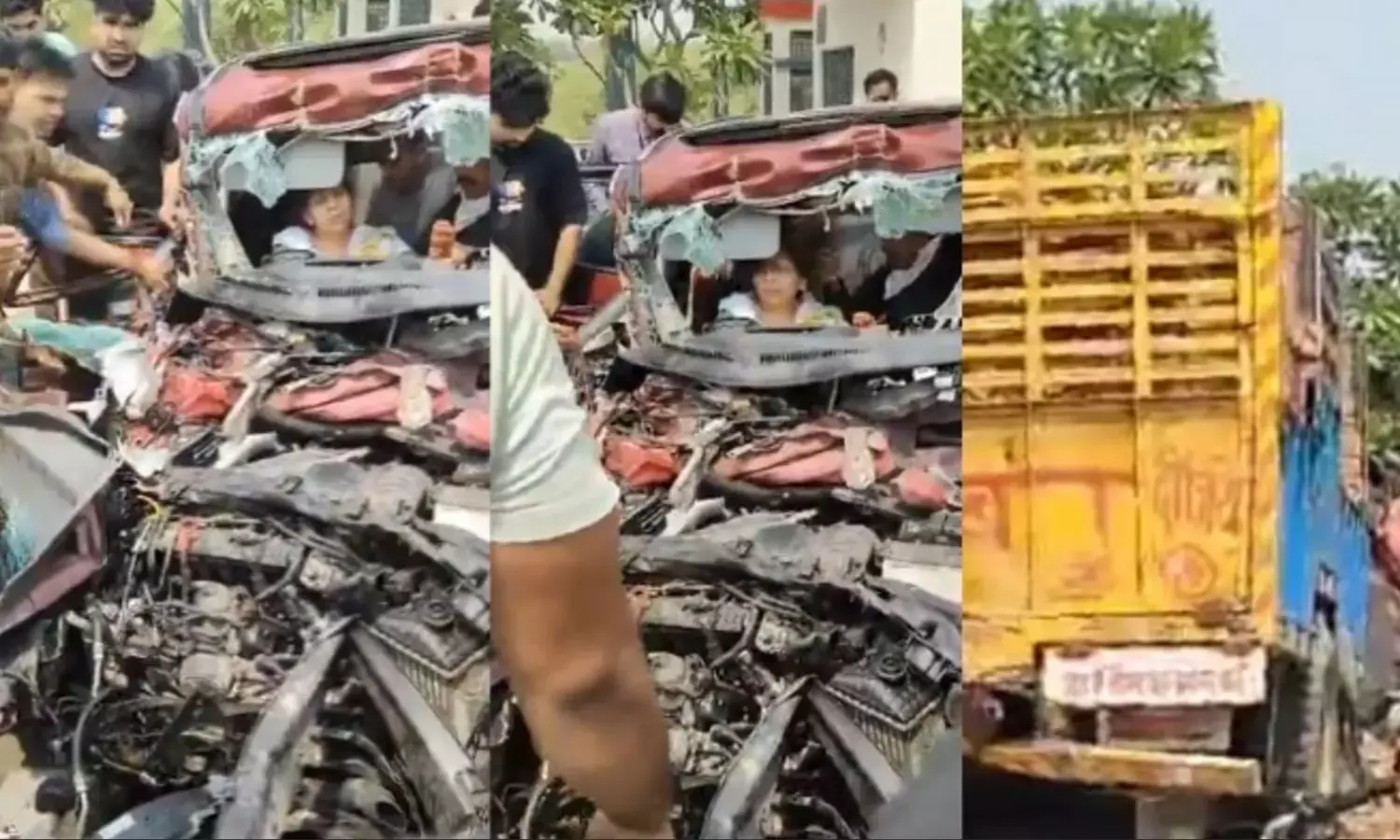 कार की हालत ऐसी है कि उसे देखकर हर कोई कांप उठ जाएं. वीडियो में देखा जा सकता है कि सभी लोग कार के अंदर बुरी तरह फंसे हुए हैं. ट्रैक्टर की हालत आप भी देख सकते हैं कि वह भी डिवाइडर से टकराकर आगे बढ़ गया है. ट्रैक्टर का इंजन भी आधा उल्टा हो गया है.