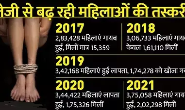गृह मंत्रालय द्वारा संसद में पिछले हफ्ते पेश किए गए आंकड़ों के अनुसार देश में 2019 से 2021 के बीच 18 साल से ज्यादा उम्र की 10,61,648 महिलाएं लापता हुईं जबकि इसी अवधि में देश से 18 साल उम्र की 2,51,430 लड़कियां गायब हुईं. इन आंकड़ों का संकलन राष्ट्रीय अपराध रिकॉर्ड ब्यूरो (NCRB) ने किया है.
