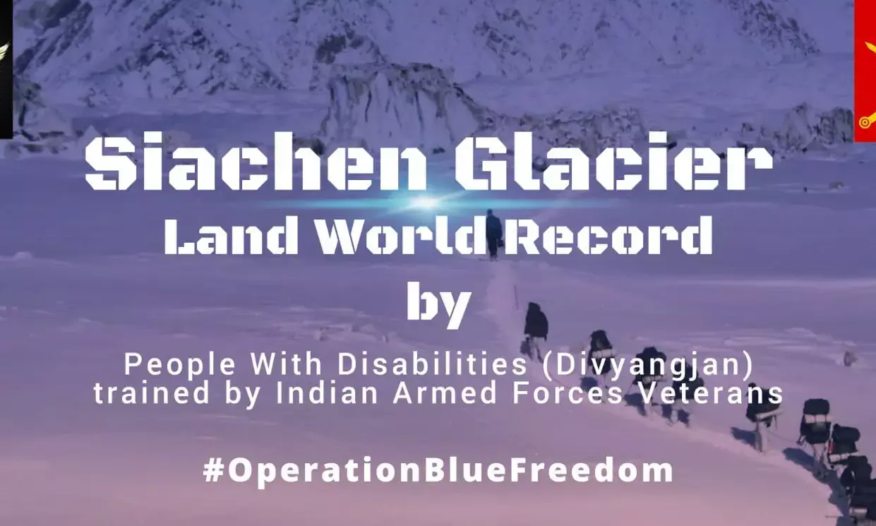 पीआईबी दिल्ली : देश भर के दिव्यांगजन विश्व के सबसे ऊंचे युद्ध क्षेत्र तक पहुंचने के लिए दिव्यांगजनों की सबसे बड़ी टीम के लिए एक नया विश्व रिकॉर्ड स्थापित करने हेतु सियाचिन ग्लेशियर तक एक अभियान आरंभ करेंगे। हाल ही में, भारत सरकार ने दिव्यांगजनों की एक टीम को सियाचिन ग्लेशियर पर चढ़ने की अनुमति दी है। दिव्यांगनजों की टीम को पूर्व सशस्त्र बलों की एक टीम 'टीम क्लॉ' द्वारा प्रशिक्षित किया गया है। देश भर के चुने हुए दिव्यांगजन विश्व के सबसे ऊंचे युद्धक्षेत्र तक पहुंचने के लिए दिव्यांगजनों की सबसे बड़ी टीम का एक नया विश्व रिकॉर्ड स्थापित करने के लिए कुमार चौकी (सियाचिन ग्लेशियर) तक एक अभियान आरंभ करेंगे।