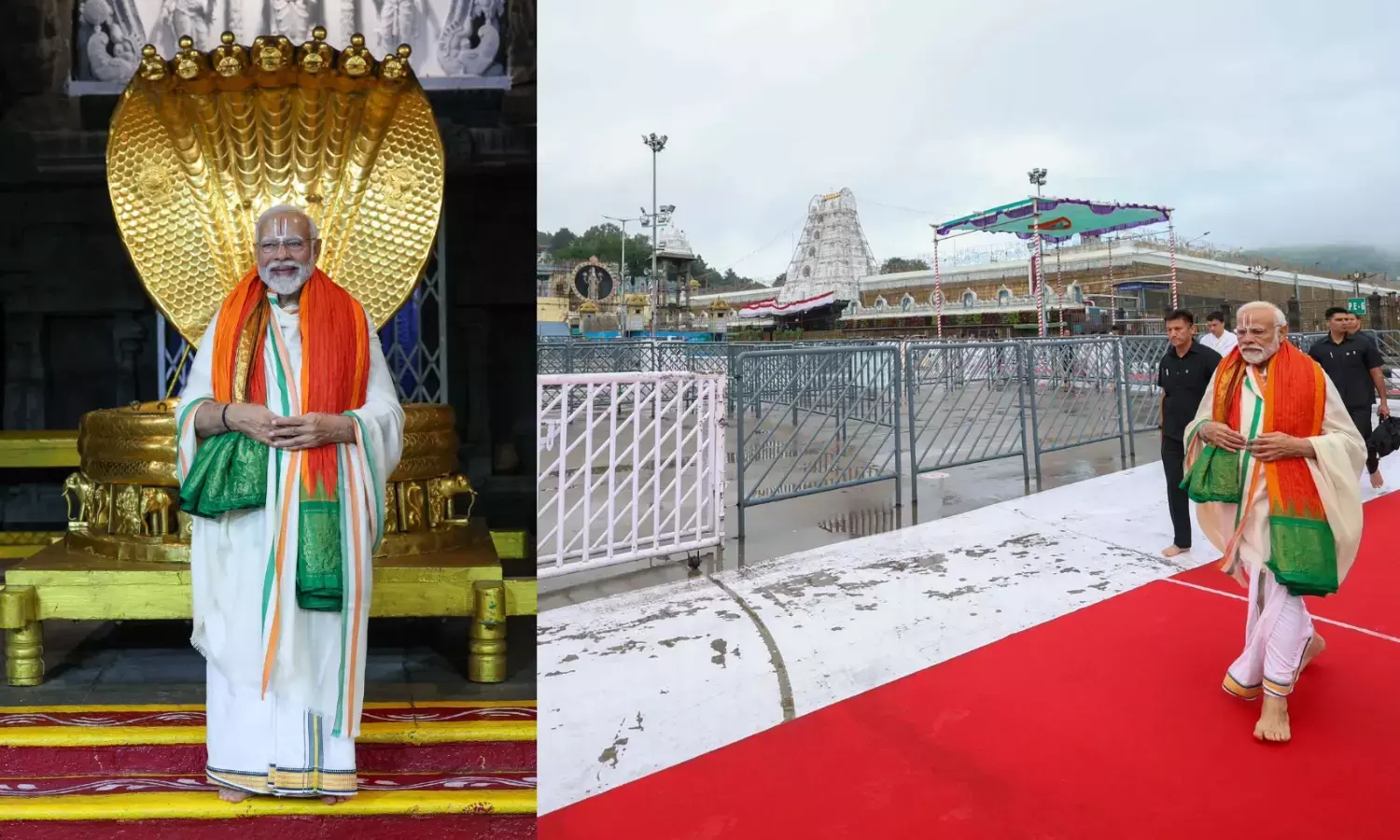 प्रधानमंत्री नरेंद्र मोदी ने तिरुपति के प्रसिद्ध श्री वेंकटेश्वर स्वामी मंदिर का दौरा किया और पूजा-अर्चना की।;