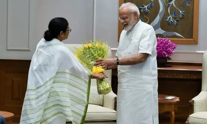 बता दें, पश्चिम बंगाल की मुख्यमंत्री ममता बनर्जी ने बुधवार को नई दिल्ली में प्रधानमंत्री नरेंद्र मोदी से होने वाली मुलाकात को 'शिष्टाचार भेंट' बताते हुए कहा कि वह इस दौरान राज्य से जुड़े कई मुद्दों को उनके सामने उठाएंगी, जिसमें राज्य को मिलने वाला कोष का मुद्दा अहम है. मंगलवार को राष्ट्रीय राजधानी के लिए रवाना होने से पहले हवाईअड्डे पर संवाददाताओं से बातचीत में बनर्जी ने कहा कि वह राज्य के नाम में परिवर्तन, सार्वजनिक क्षेत्र के बैंकों के विलय जैसे मुद्दों को उठाएंगी. उन्होंने कहा कि राष्ट्रीय राजधानी की उनकी यात्रा 'नियमित कामकाज' का हिस्सा है. दोनों नेताओं के बीच मुलाकात को लेकर बने माहौल के बीच उनकी यह टिप्पणी आई है. हाल के आम चुनाव से ही उनके रिश्ते अच्छे नहीं है।