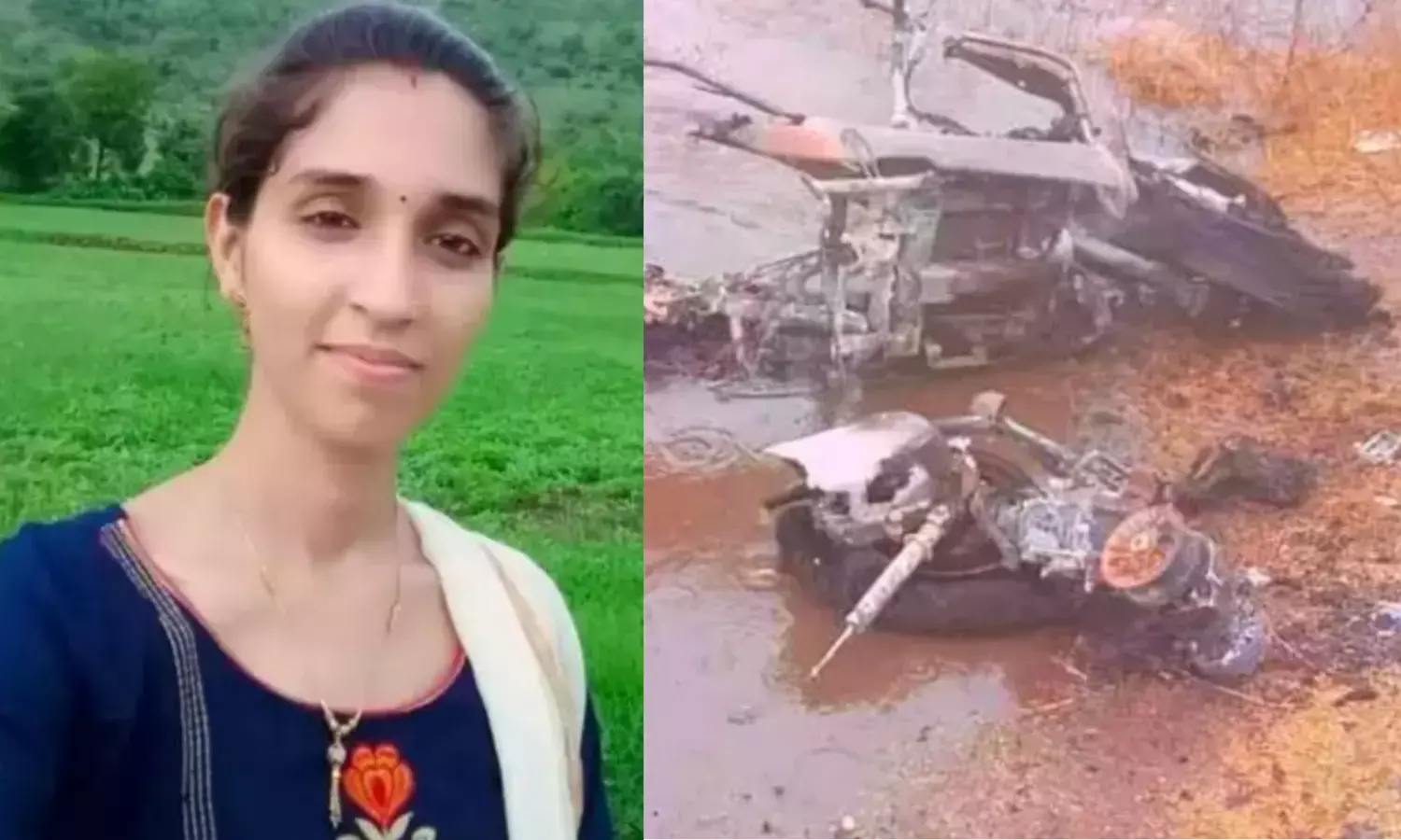 महिला टीचर की मौके पर ही मौत हो गई और स्कूटी के साथ ही शव भी जलता रहा।;