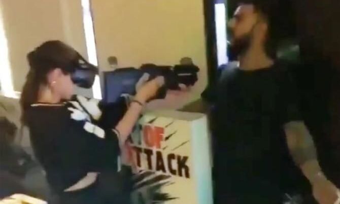 विरुष्का की जोड़ी बैंगलोर के एक मॉल में वर्चुअल रिएलिटी शूटिंग गेम खेलते हुए नजर आए। वीडियो में देखा जा सकता है कि अनुष्का ने हाथों में बंदूक पकड़ी हुई है और विराट उनके सामने मरने का नाटक करते हुए नजर आ रहे हैं। इसके अलावा दोनों ही मॉल में घूमते हुए भी नजर आ रहे हैं। इससे पहले दोनों की जोड़ी को बैंगलोर के एयरपोर्ट पर भी साथ देखा गया था। जहां ये जोड़ी हाथों में हाथ डालकर एयरपोर्ट से बाहर निकलती हुई नजर आ रही है।