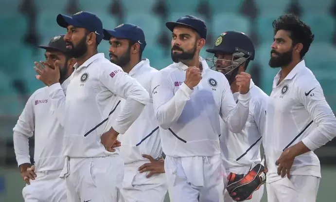 विशाल स्कोर के सामने दक्षिण अफ्रीकी बल्लेबाज दबाव में दिखे. 14 के कुल स्कोर पर अश्विन ने एडेन मार्करम (5) को बोल्ड कर मेजबान टीम को पहली सफलता दिलाई. थेयुनिस डे ब्रूइन ने चार रनों का योगदान दिया और 31 के कुल स्कोर पर अश्विन का दूसरा शिकार बने. तीन रन बाद जडेजा ने डेन पीट को बिना खाता खोले पवेलियन भेज दक्षिण अफ्रीका को मुसीबत में डाल दिया. रविचंद्रन अश्विन और रवींद्र जडेजा की जोड़ी ने दक्षिण अफ्रीका के तीन विकेट महज 39 रनों पर ही चटका दिए थे.