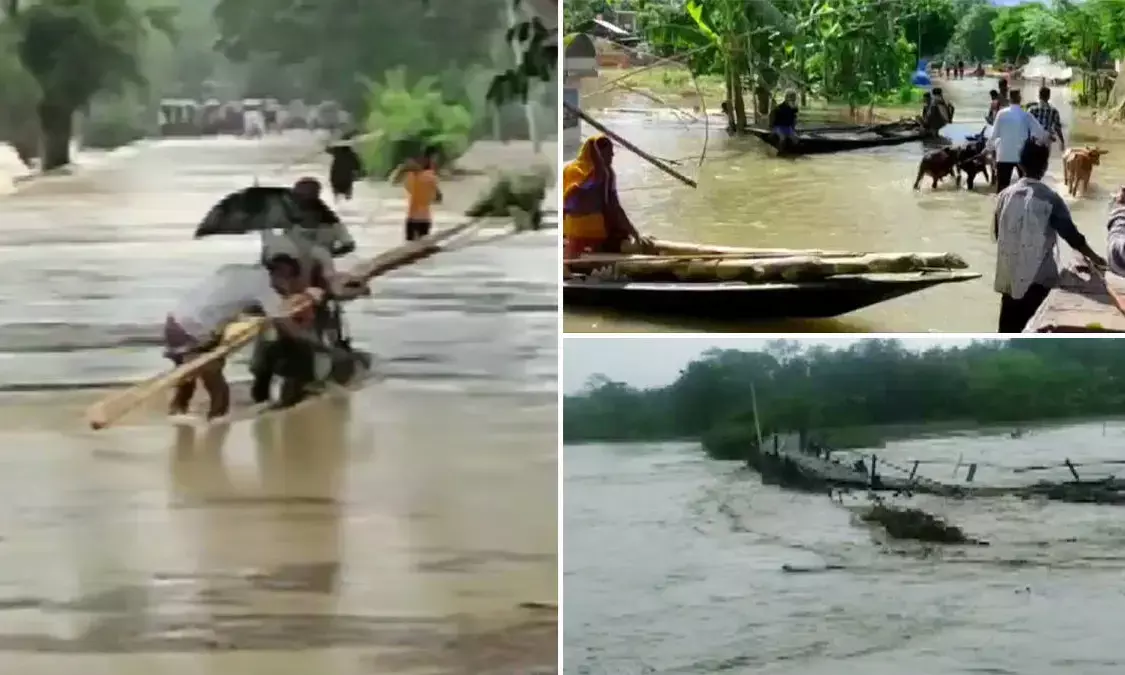35 जिलों वाले असम के 28 जिलों के 2,930 गांवों में 19 लाख लोग बाढ़ की मार झेल रहे हैं. खबरों के मुताबिक बाढ़ से 54 लोगों की मौत हो चुकी है. दारांग (Darang) जिले के सिपाझार इलाके में NH-15 तो पूरी तरह से पानी में डूब गया है. इसके अलावा भारी बारिश और बाढ़ के कारण अब तक 13 तटबंध टूट गए, 64 सड़कें और एक पुल क्षतिग्रस्त हो चुके हैं. गांव के घरों में अब बाढ़ के पानी का कब्जा है. लोग अपने घर छोड़ सुरक्षित जगह की तरफ बढ़ रहे हैं