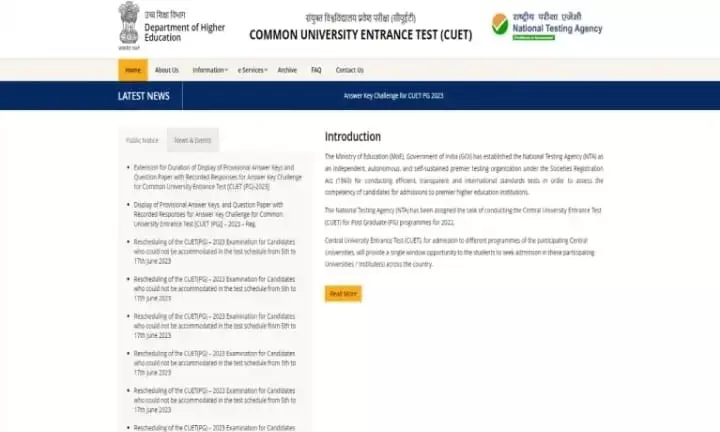 CUET PG की आधिकारिक साइट cuet.nta.nic.in पर जाएं ।