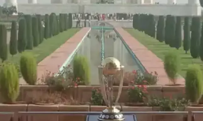 क्रिकेट वर्ल्ड कप का आयोजन भारत में हो रहा है। 5 अक्टूबर से इसकी शुरुआत हो जाएगी। आयोजन में अब 50 दिन से कम समय रह गया है। ऐसे में इसके प्रमोशन को लेकर भी तैयारियां तेज हो गई हैं। बुधवार सुबह करीब साढे़ सात बजे ताजमहल में कुछ लोग हाथ में चमचमाती ट्राफी लेकर पहुंचे। इस ट्राफी को ताजमहल के वीडियो शूट प्लेटफॉर्म पर रख दिया गया। जैसे ही लोगों की नजर ट्राफी पर लिखे ICC वर्ल्ड कप 2023 पर पड़ी तो रुक गए।ICC क्रिकेट वर्ल्ड कप की शुरुआत 5 अक्टूबर से होनी है। ऐसे में क्रिकेट के सबसे बड़े आयोजन से पहले ICC ने प्रमोशन की तैयारी शुरू कर दी है। बुधवार सुबह ICC क्रिकेट वर्ल्ड कप 2023 की ट्राफी ताजमहल पहुंची। यहां पर ट्राफी को रखकर वीडियो शूट किए गए।