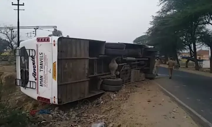 बता दें घटना यूपी के हाथरस जिले के थाना हाथरस जंक्शन क्षेत्र के बरेली मथुरा राजमार्ग पर मेंडू कस्बे के भैरव मंदिर के निकट श्रद्धालुओं से भरी एक प्राइवेट बस नंबर यूपी25 AT 2703 असंतुलित होकर सड़क किनारे पलट गयी। दुर्धटना में बस में सवार एक दर्जन श्रद्धालु चोटिल हो गए। बस का ड्राइवर दुर्घटना के बाद फरार हो गया।