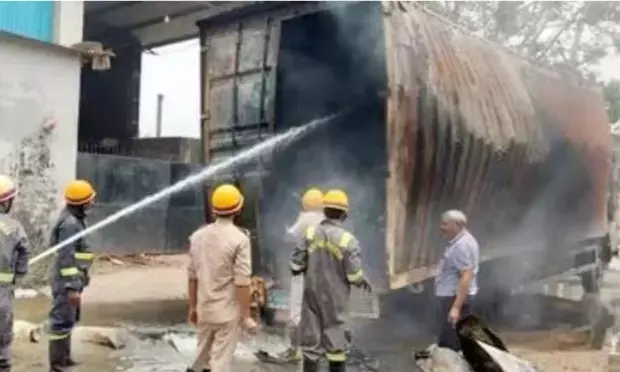 ट्रक पर गुजरात का पंजीकरण नंबर था और वह दिल्ली-मेरठ रोड के पास हिसाली रोड पर था जब वह ओवरहेड बिजली के तारों को छू गया। वाहन में पुराने रेफ्रिजरेटर और एयर कंडीशनर के पुर्जे भरे हुए थे। बिजली का करंट प्रवाहित होने से दोनों व्यक्ति झुलस गए और वाहन में आग लग गई। मुख्य अग्निशमन अधिकारी राहुल पाल ने कहा, हमने चार दमकल गाड़ियां भेजीं और एक घंटे के भीतर आग पर काबू पा लिया गया।