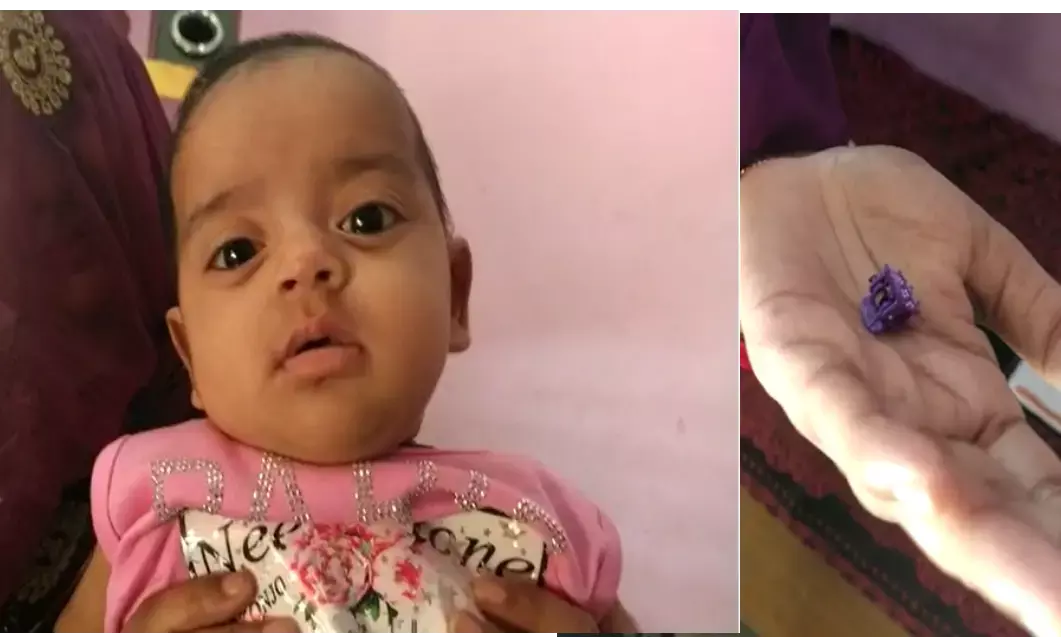गाजियाबाद : 5 महीने की रिया ने खेलते समय बालों में लगाने वाले क्लेचर को निगल लिया