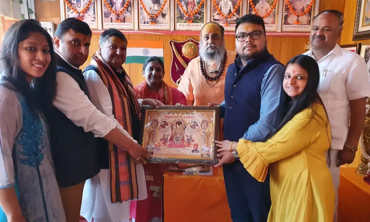 उन्होंने उनको भगवान दूधेश्वर का पटका पहनाकर एवं उनकी धर्मपत्नी को मां भगवती की चुनरी ओढ़ाकर दोनों को आशीर्वाद दिया और कहा कि गाजियाबाद और राष्ट्रहित में लग जाएं योगी महाराज और मोदी का सपनों को साकार करें पूर्ण रूप से राष्ट्र के प्रति समर्पित होकर भारत के प्रत्येक नागरिक का सम्मान करते हुए आदर के साथ में प्रत्येक नागरिक का समस्याओं को समाधान करने में पूर्ण सहयोग करें. राष्ट्र के प्रति पूर्ण रूप से समृद्ध समर्पित रहे ऐसा आशीर्वाद देकर महाराज ने राज्य सभा सांसद को दिया. इस अवसर पर साथ सांसद प्रतिनिधि देवेन्द्र हितकारी, सौरव जायसवाल आदि अनेक भाजपा नेता मौजूद रहे.