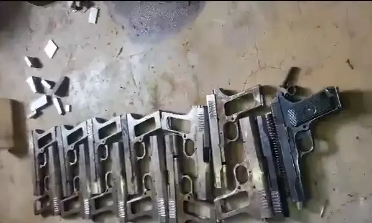 25-जुलाई -2023 को एसटीएफ फील्ड इकाई मेरठ से निरीक्षक रविन्द्र कुमार के नेतृत्व में एक टीम अभिसूचना संकलन के उद्देष्य से थाना गाजियाबाद क्षेत्र में मौजूद थी, इस दौरान सूचना प्राप्त हुई कि फैक्ट्री एरिया मोरटा में एक फैक्ट्री में अवैध शस्त्र बनाने का काम चल रहा हैं। इस सूचना पर एसटीएफ मेरठ टीम स्थानीय पुलिस को साथ लेकर उक्त स्थान पहुॅची। फैक्ट्री के मेन गेट के पास एक सफेद बोर्ड लगा है, जिस पर एसआरएच इण्डिया इंडस्ट्रीज, 696 दिल्ली मेरठ रोड गाजियाबाद लिखा हुआ था। एसटीएफ टीम उक्त फैक्ट्री के अन्दर गयी तो वहॉ पर चारो तरफ खराद की मशीने लगी है तथा मशीन के आस-पास ही पिस्टल के अधवनी ट्रिगर गार्ड व ट्रिगर बने रखे हुए थे जिस पर एसटीएफ टीम द्वारा वहॉ मौजूद लोगों को गिरफ्तार कर लिया गया एवं उक्त स्थान से उपरोक्त बरामदगी हुई।