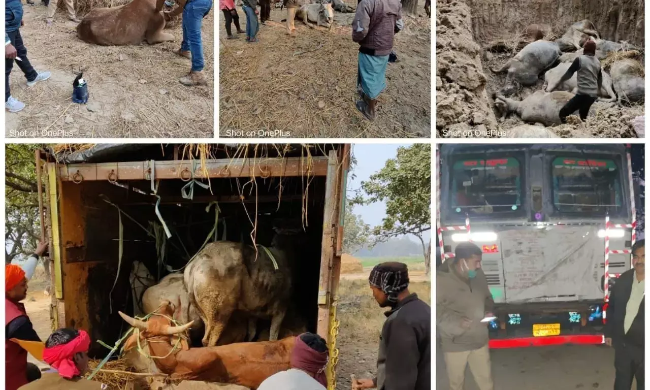 मामला बीते शाम का है जानकारी के अनुसार ट्रक में 21 गौवंश लदे थे !गौवंश से भरे ट्रक को लेकर सिराथू चौकी पुलिस स्थायी गौशाला सौराई खुर्द पहुंची जब जानवरों को बाहर निकाला गया उसमें से 7 गौवंशो की मौत हो गयी थी 3 गंभीर घायल थे जिन्हें पशु चिकित्सक से उपचार कर और मरे हुए 7 गौवंशो का पोस्टमार्टम करवाकर चौकी पुलिस ने जेसीबी मशीन बुलाकर गड्ढा खोदवाकर दफन करवा दिया है! ,क्या क्षेत्र में सफेदपोश गौतस्कर सक्रिय हैं ?