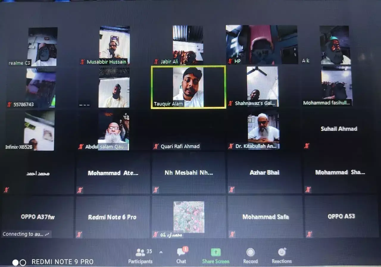 वर्चुअल बैठक का संचालन अल्पसंख्यक कांग्रेस के प्रदेश उपाध्यक्ष किताबुल्ला अंसारी ने किया. बैठक में मौलाना मोहम्मद शमीम मिस्बाही , संतकबीरनगर, क़ारी इज़हारुल हक़ , बस्ती, मौलाना मोहम्मद शरीफ़ मिस्बाही, कांग्रेस प्रवक्ता ओबैदुल्ला नासिर, संतकबीरनगर,मौलाना आस मोहम्मद, संतकबीरनगर, मौलाना मोहम्मद दाऊद अलीमी, सिद्धार्थनगर, मौलाना अब्दुल्लाह बस्ती, मौलाना मुसब्बिर हुसैन, संतकबीरनगर, मौलाना फ़सीहुल्लाह, बस्ती, क़ारी अब्दुल करीम अमजदी, बस्ती, मौलाना अब्दुस्सलाम, बस्ती क़ारी मोहब्बत अली, बस्ती, मौलाना ग़ुलाम जिलानी, संतकबीरनगर, हाफ़िज मेंहदी हसन, बस्ती, क़ारी मोहम्मद वज़ीर,बस्ती, अब्दुल हफ़ीज खान, बस्ती, मोहम्मद अतीक़, संतकबीरनगर, क़ारी रफ़ी अहमद, संतकबीरनगर, मौलाना नूरुलहुदा मिस्बाही, संतकबीरनगर, मौलाना जाफर अली, बस्ती मौजूद रहे.