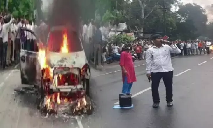 मथुरा में हाईवोल्टेज ड्रामा, SSP दफ्तर के बाहर फूंकी कार, बीच सड़क चलाईं गोलियां