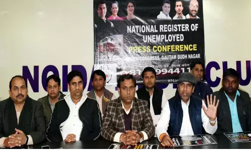 नोएडा। देश में बढ़ती बेरोजगारी के खिलाफ बेपरवाह केन्द्र सरकार को जगाने के लिए अब कांग्रेस अनएंपलायमेंट रजिस्टर लाने वाली है। इसकी घोषणा युवा कांग्रेस के जिलाध्यक्ष पुरुषोत्तम नागर ने सैक्टर 29 स्थित प्रेस क्लब में आयोजित प्रेस वार्ता में कही।प्रेस को संबोधित करते हुए यूथ कांग्रेस के राष्ट्रीय सचिव दीपक भाटी चोटीवाला ने केन्द्र सरकार पर आरोप लगाया कि बीते 5 सालोें में देश में बेरोजगारी दर में अप्रत्याशित बढ़ोत्तरी हुई है।