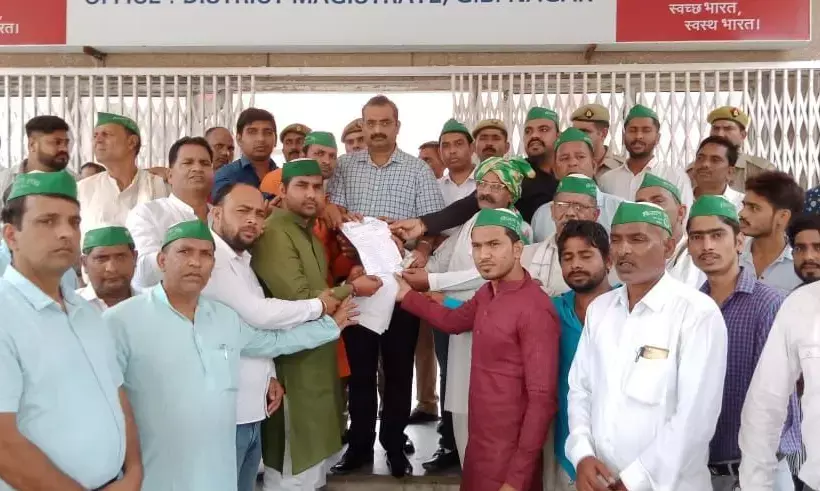 किसान किसान भूमि अधिग्रहण कानून 2013 के तहत जमीन के मुआवजे की मांग कर रहे हैं जो किसानों का संवैधानिक अधिकार है लेकिन प्रदेश सरकार किसानों को दबाने का कार्य कर रही है। अपनी मांगों को लेकर धरना दे रहे किसानों को जबरदस्ती जेल में भेज दिया है।उनकी सभी की बिना शर्त रिहाई के संबंध में आज किसान एकता संघ के कार्यकर्ता पदाधिकारियों ने जिला अधिकारी कार्यालय पहुंचकर जिलाधिकारी के नाम से ज्ञापन सिटी मजिस्ट्रेट ग्रेटर नोएडा शैलेंद्र मिश्रा को सौंपा और कहा कि सभी किसानों को जल्द से जल्द रिहा किया जाए अन्यथा किसान एकता संघ बड़ा आंदोलन करेगा।इस मौके पर संगठन के राष्ट्रीय मीडिया प्रभारी रमेश कसाना,पप्पू प्रधान, प्रताप नागर,एलकार प्रधान, अजब सिंह,सतीश कनारसी, आलोक नागर,मोहनपाल नागर,रफीक कुरैशी,ब्रिजेश नागर, इरशाद उल्लाह,धर्मपाल प्रधान, सुमित तोगड,सोनू कसाना,कालूराम मास्टर, जयप्रकाश नागर, विनोद बिरोड़ा ,मनीष बीडीसी,अरविंद सेक्रेटरी,आजाद अधाना,मनीष नागर सीपी सोलंकी,डॉ जाफर खान,वीके चौधरी सोनू योगी,ओमवीर समसपुर, अरुण खटाना,बबली,महेन्द्र कसाना, दुर्गेश शर्मा,अमित नागर, टिंकू आदि सैकड़ों लोग मौजूद रहे।