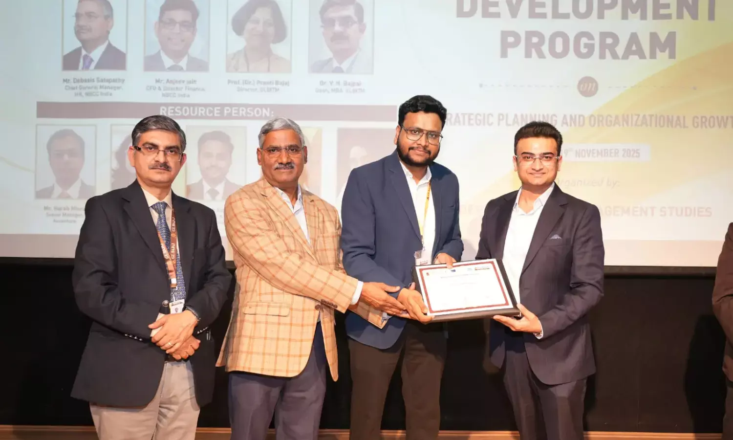 ग्रेटर नोएडा / जी एल बजाज इंस्टिट्यूट ऑफ टेक्नोलॉजी एंड मैनेजमेंट (GLBITM) के प्रबंधन अध्ययन विभाग द्वारा 17–19 नवम्बर 2025 के बीच एनबीसीसी (इंडिया) लिमिटेड, एक नवरत्न पीएसयू, के वरिष्ठ एवं मिड-लेवल अधिकारियों के लिए “स्ट्रैटेजिक प्लानिंग एंड ऑर्गनाइज़ेशनल ग्रोथ” विषय पर तीन दिवसीय मैनेजमेंट डेवलपमेंट प्रोग्राम (MDP) का सफल आयोजन किया गया।