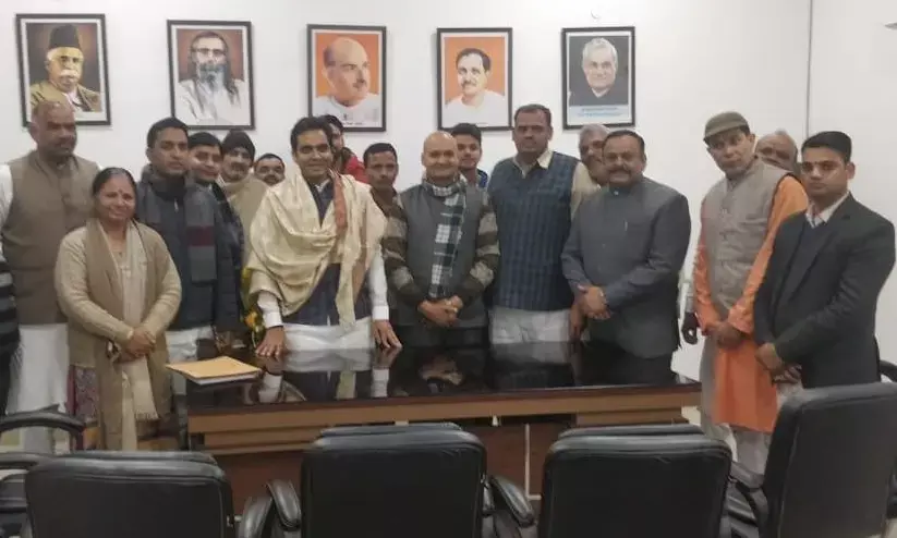 नोएडा प्राधिकरण की अनैतिक कार्य के विरोध में विधायक से मिले ग्राम प्रधान संगठन के कार्यकर्ता