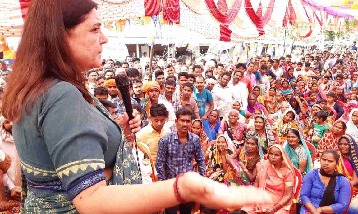 वही मेनका गाँधी ने यह भी कहा कि क्षेत्र में मेरे पास कई कोटेदार आए, उन्होंने बताया कि बंदूक की नोक पर हमसे लाखों की वसूली हुई। जो राशन गरीबों को बंटने आया था। जबरन उठवा ले गए। अगर बंदूकधारी को आप लोग चुनेंगे तो यही होगा। क्योंकि वह लेने वाला है। जबकि मैं यहां की जनता को देने आई हूं। फैसला आपको करना है। गुंडे-बदमाशों को यहां से भगाना व जनता का भला एवं जिले का विकास ही हमारा मकसद है। वही मेनका गांधी ने जनसभा को सम्बोधित करते हुए गठबंधन प्रत्यासी पर जमकर किया प्रहार कहा रैली में आये नौजवान नही देख रहे अपना भविष्य, मेनका गाँधी आएगी तो चीनी मिल को करेगी ठीक। इनके अंदर नही है कोई काबिलियत,बंदूक की नोक पर वसूलेंगे गन्ना किसानों से दो-दो सौ.रुपये,आप लोग उन लोगो को समझाने की करे कोशिश। यहां कोई गठबंधन नही है यहाँ एक तरफ मेनका गांधी है तो दूसरी तरफ वह बंदूक धारी है जो है एक क्रिमनल। जो बंदूक की नोंक पर गोदाम का सारा अनाज लूट लिया।