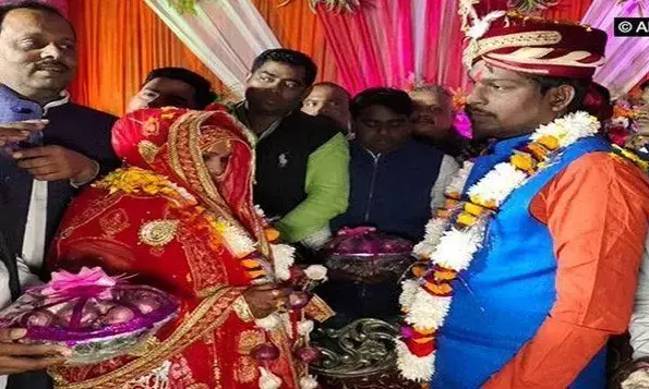 प्याज की महंगाई को देखते हुए शादी में दुल्हन ने दूल्हा को प्याज की माला पहनाई;