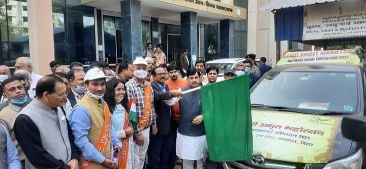 बिहार सरकार के उद्योग मंत्री शाहनवाज हुसैन ने हरीझंडी दिखा करके टीम को रवाना किया। उद्योग मंत्री ने कहा कि बिहार में उद्योग का जाल बिछ रहा है और भारत सरकार बिहार सरकार के साथ मिलकर काम कर रही है। बिहार में अधिक से अधिक उद्योग लगे और अधिक से अधिक लोगों को रोजगार भी मिल सके। एमएसएमई के बारे में लोग जितना जानेंगे उतना ही लाभ होगा।साथ ही छोटे-छोटे कलाकारों व बुनकरों को भी लाभ मिलेगा।
