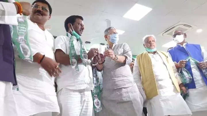 राजद के टिकट से कुम्हरार विधानसभा से चुनाव लड़े पूर्व उम्मीदवार डॉ. धर्मेंद्र कुमार अपने समर्थकों के साथ शनिवार को जदयू में शामिल हुए। धर्मेंद्र पेशे से दांत के डॉक्टर हैं। इनको जदयू शामिल कराने के लिए खुद जदयू के राष्ट्रीय अध्यक्ष ललन सिंह, प्रदेश अध्यक्ष उमेश कुशवाहा, ग्रामीण विकास मंत्री श्रवण कुमार, शिक्षा मंत्री विजय चौधरी, जल संसाधन मंत्री संजय झा, जहानाबाद के सांसद चन्द्रेश्वर चन्द्रवंशी सहित कई जदयू के बड़े नेता मौजूद थे।