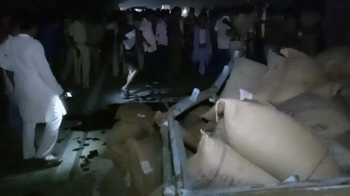 पलटे ट्रक से अनाज लूटने से रोका तो SDM को पीटा, बोरे लेकर भागे लोग