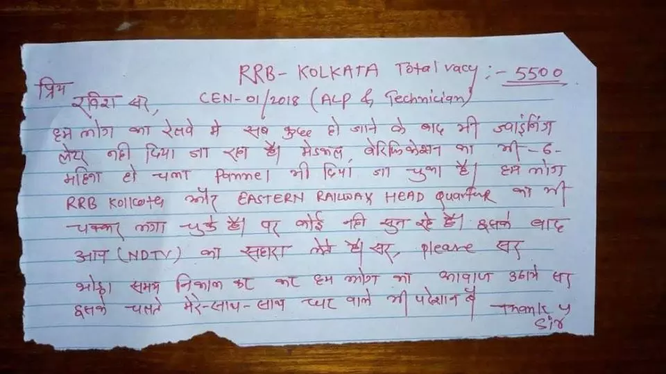 2019 के चुनाव को देखते हुए रेलवे की परीक्षा निकली।क्या आपको पता है उस परीक्षणों छात्र पास होकर घर बैठे हैं। अभी तक सभी को नियुक्ति पत्र नहीं मिला। जबकि उनमें से कई उनके ही वोटर हैं। हिन्दू मुस्लिम टॉपिक घोंट कर पी गए हैं फिर भी ज्वाइनिंग लेटर नहीं मिल रहा है। क्या आपने आई टी सेल या ए बी वी पी को इनके लिए संघर्ष करते देखा है? सरकार आपकी है। रेल मंत्री आपके हैं तो अपने वोटर को नियुक्ति पत्र दिला दीजिए।