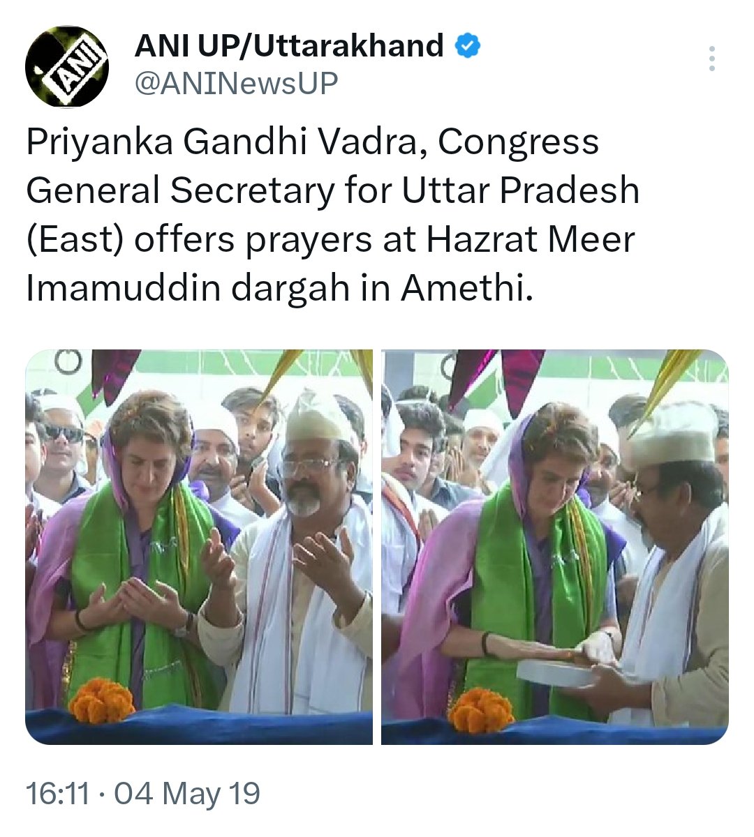 कर्नाटक कांग्रेस प्रमुख के इसी बयान पर स्मृति ईरानी ने प्रियंका गांधी के नमाज पढ़ने वाला दावा किया है. हालांकि उन्होंने इसकी कोई तस्वीर या वीडियो बतौर सबूत नहीं दिया है. वहीं उनके दावे पर अभी से सवाल उठने लगे हैं. सोशल मीडिया पर वीडियो-तस्वीरें वायरल हैं जिनमें प्रियंका गांधी को मुस्लिम समुदाय के लोगों के साथ देखा जा सकता है. लेकिन उसमें वो नमाज पढ़ती नहीं, दुआ करती दिख रही हैं.