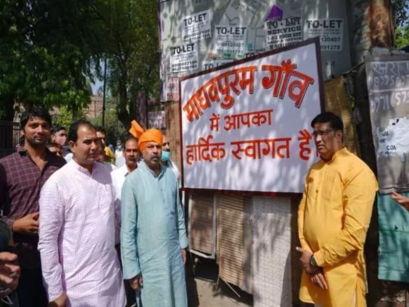नई दिल्ली: भाजपा नेताओं ने बुधवार को दक्षिणी दिल्ली के 'मोहम्मदपुर' गांव का नाम बदलकर 'माधवपुरम' करने के एक समारोह में भाग लिया और कहा कि स्थानीय लोग खुद को 'गुलामी के प्रतीक' के साथ नहीं जोड़ना चाहते हैं। पार्टी की दिल्ली इकाई के अध्यक्ष आदेश गुप्ता ने भी कार्यकर्ताओं और स्थानीय लोगों के साथ एक नए सिरे से चित्रित बोर्ड के सामने पोज दिया, जिसपर 'माधवपुरम' में आपका स्वागत है, ऐसा लिखा था।