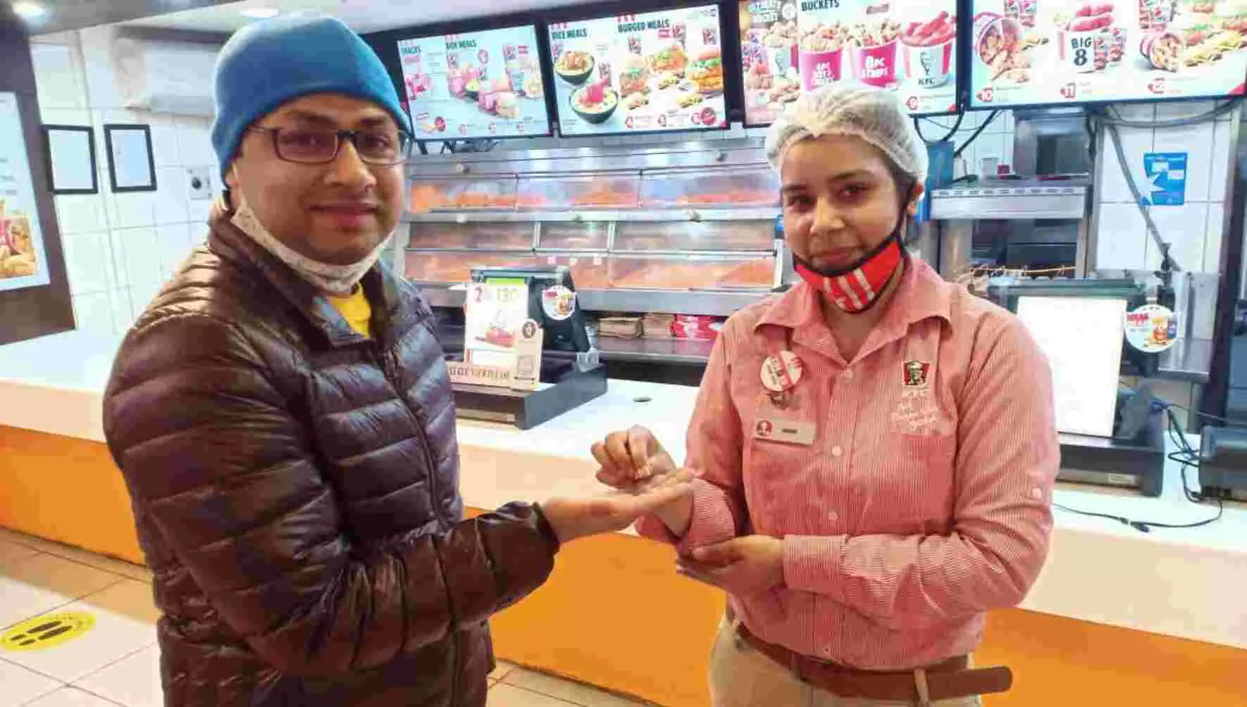 A positive story to start the #NewYear2021 Yesterday my engagement ring slipped off my finger at one of the @KFC_India shops in Connaught Place. Today the outlet manager Suman handed it over to my friend @GAURAVA23 with smile on her face. Full marks for honesty 👏👏 pic.twitter.com/1p8jRLKGcK