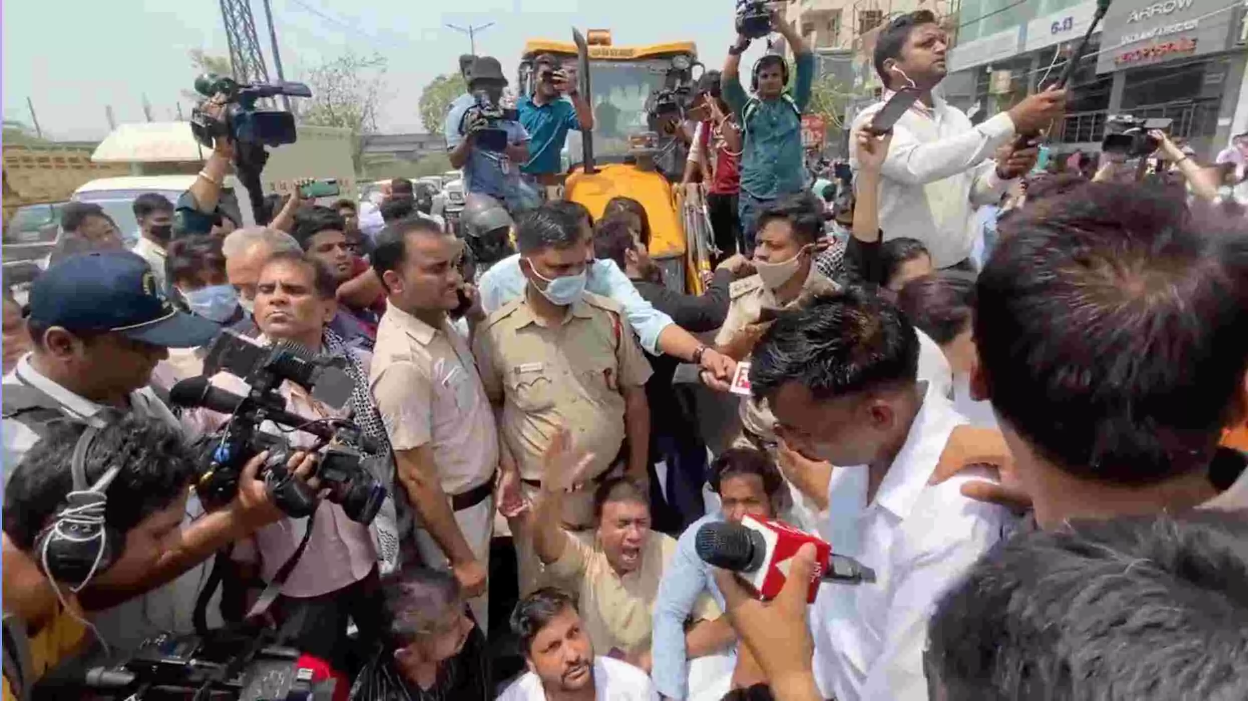 Delhi : शाहीन बाग पहुंचा एमसीडी का बुलडोजर, बुलडोजर के आगे बैठे लोग, मौके पर भारी सुरक्षाबल तैनात