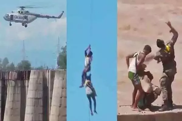 नदी में अचानक बढ़ गया जलस्तर, निर्माणाधीन पुल पर फंसे 2 लोगों का एयरफोर्स ने किया LIVE रेस्क्यू