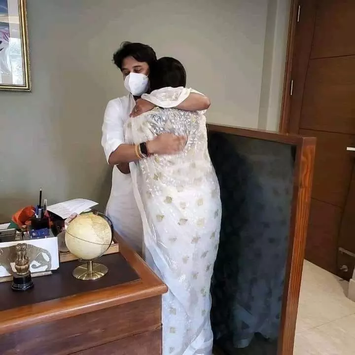 ये तस्वीर एक राजनेता और उनकी समर्थक महिला नेत्री की है। अपने आदर्श राजनेता के केंद्र में मंत्री बनने से भाव विभोर महिला नेत्री की यह एक भावुक अभिव्यक्ति है।