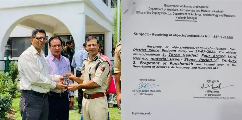 पुलिस ने इसकी सूचना जम्मू-कश्मीर अभिलेखागार, पुरातत्व और संग्रहालय के अधिकारियों को दी और उनसे मुख्यालय पर आकर इसकी जांच का आग्रह किया। बता दें कि 30 मार्च 2022 को भी जम्मू-कश्मीर के पुलवामा में मजदूरों को नदी से रेत निकालते समय 9वीं शताब्दी की भगवान विष्णु की दुर्लभ मूर्ति मिली थी।