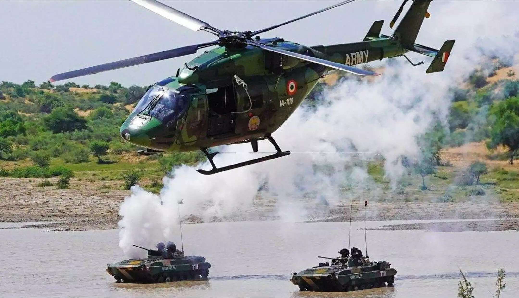 इस युद्धाभ्यास में लाइट कॉम्बैट एयरक्राफ्ट तेजस, हल्के लड़ाकू हेलीकॉप्टर प्रचंड, लाइट यूटिलिटी हैलिकॉप्टर ध्रुव, नौ-सेना की लाइट वेट टॉरपीडो, पिनाका मल्टी बैरल रॉकेट लॉन्चर, युद्धक टैंक टी (T 90), अर्जुन टैंक, स्व-चालित होवित्जर के-9 (K-9) वज्र, धनुष, सारंग तोपें, लॉयटरिंग म्यूनिशन सहित सर्वत्र और अत्याधुनिक ड्रोन और यूएवी समेत रोबोटिक डॉग ‘म्यूल’ भी युद्ध क्षेत्र में अपनी ताकत का परचम दिखाएंगे।