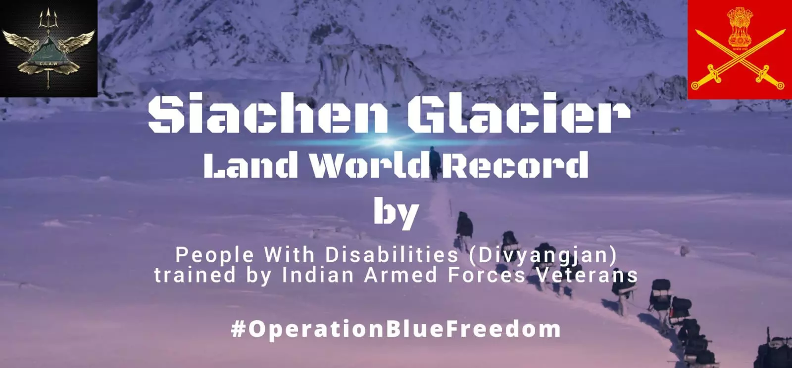 पीआईबी दिल्ली : देश भर के दिव्यांगजन विश्व के सबसे ऊंचे युद्ध क्षेत्र तक पहुंचने के लिए दिव्यांगजनों की सबसे बड़ी टीम के लिए एक नया विश्व रिकॉर्ड स्थापित करने हेतु सियाचिन ग्लेशियर तक एक अभियान आरंभ करेंगे। हाल ही में, भारत सरकार ने दिव्यांगजनों की एक टीम को सियाचिन ग्लेशियर पर चढ़ने की अनुमति दी है। दिव्यांगनजों की टीम को पूर्व सशस्त्र बलों की एक टीम 'टीम क्लॉ' द्वारा प्रशिक्षित किया गया है। देश भर के चुने हुए दिव्यांगजन विश्व के सबसे ऊंचे युद्धक्षेत्र तक पहुंचने के लिए दिव्यांगजनों की सबसे बड़ी टीम का एक नया विश्व रिकॉर्ड स्थापित करने के लिए कुमार चौकी (सियाचिन ग्लेशियर) तक एक अभियान आरंभ करेंगे।