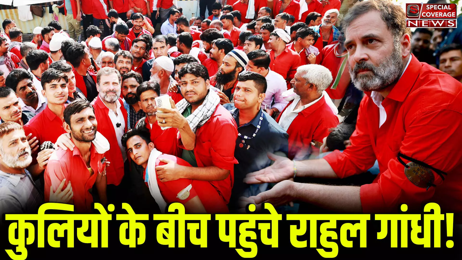 सैकड़ों कुलियों से घिरे राहुल गांधी के हाव-भाव की भीड़ ने सराहना की।