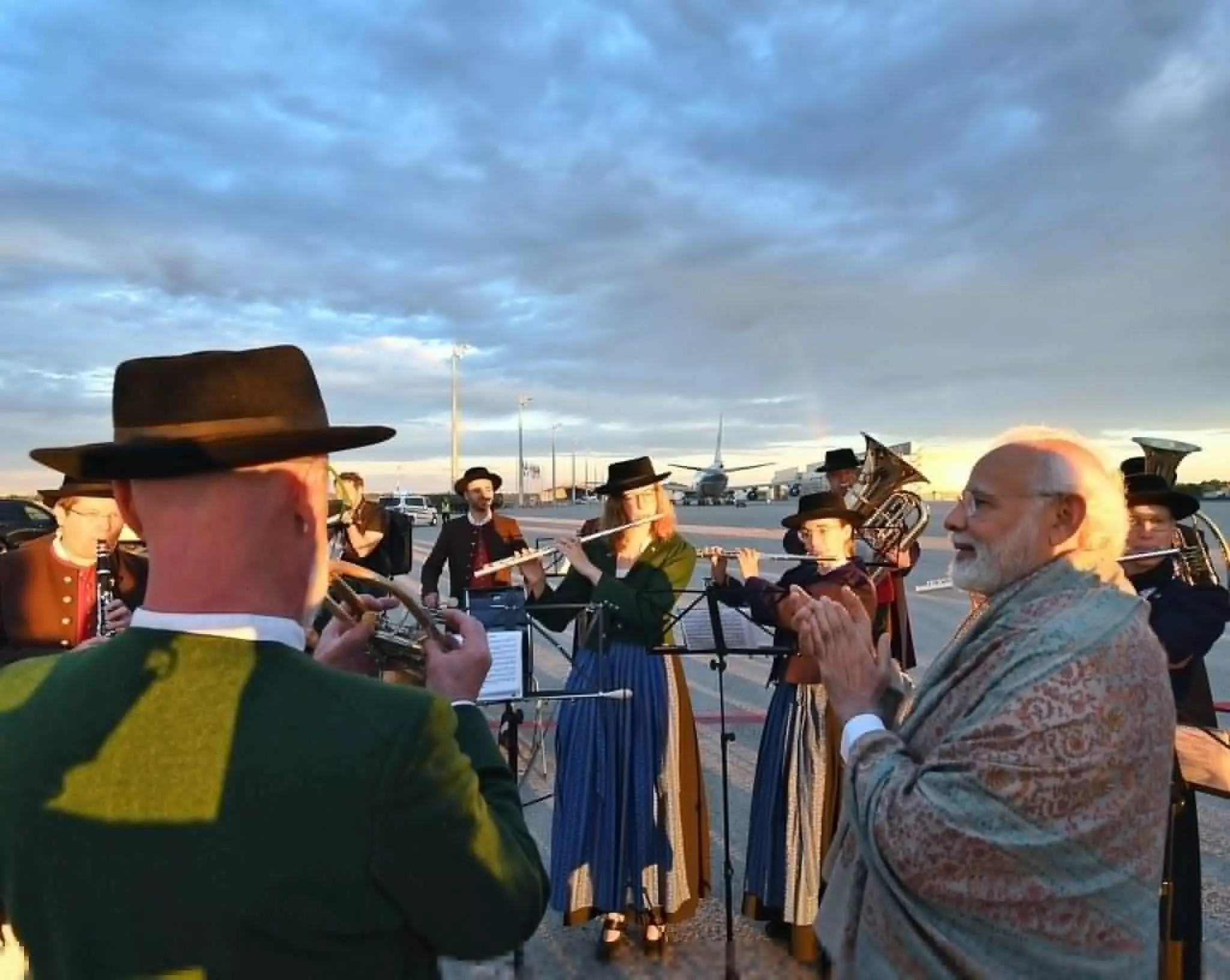#WATCH | A Bavarian band welcomes PM Narendra Modi on his arrival in Munich, Germany
