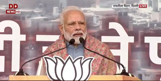 प्रधानमंत्री नरेंद्र मोदी दिल्ली के रामलीला मैदान में 'धन्यवाद रैली' को संबोधित कर रहे हैं। पीएम ने मैदान में मौजूद लोगों से तीन बार नारे लगवाए, विविधता में एकता, यही भारत की विशेषता।